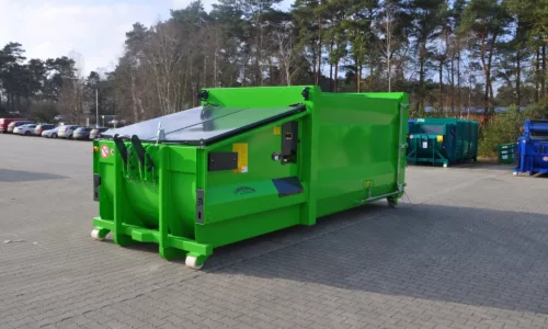 De APB-1620 is eenvoudig te laden via een royale vulopening. Veiligheid is gewaarborgd met features als een noodstop en vergrendelmechanismen die voorkomen dat de pers in werking treedt als de vuldeur open is. Ondanks zijn kracht opereert de machine relatief stil en beheerst. Kortom, de APB-1620 combineert brute kracht met slimme techniek. Voor klanten betekent dit minder tijd kwijt aan afvalbeheer, lagere operationele kosten en een schonere werkomgeving. En dankzij de zelfreinigende pers blijven de prestaties op peil en de onderhoudsintervallen beperkt. Deze Bergmann perscontainer is een investering die zich terugbetaalt in efficiëntie en betrouwbaarheid, dag na dag.