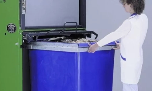 - Dankzij de rolcontainer kan het gecomprimeerde afval makkelijk worden gehanteerd
