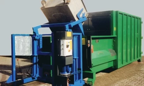 - Gebruik overal daar, waar op meerdere plaatsen in het bedrijf eerst materialen verzameld worden in kleine standaardcontainers en vervolgens op een centraal punt verdicht moeten worden