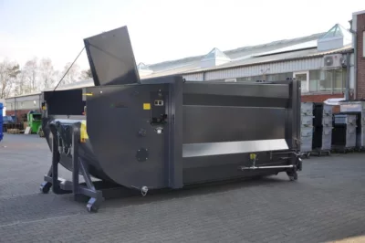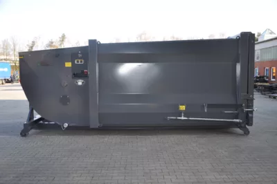 De MPB-918 heeft een grote vulopening en slokt moeiteloos volle vuilniszakken, organisch materiaal en ander rest stromen op. Wanneer u de klep sluit en de pers start, wordt het recyclebaar materiaal krachtig samengedrukt. Het resultaat is een sterk verminderd afvalvolume in de 18–24 m³ container, wat betekent dat zelfs bedrijven met veel afvaltransporten deze flink kunnen terugdringen. Optioneel kan de perscontainer worden voorzien van een vloeistofafvoersysteem, zodat bij het legen vrijgekomen leachaat opgevangen en milieuvriendelijk afgevoerd kan worden. Zoals alle Bergmann machines is ook de MPB-918 gemaakt voor veiligheid en gemak: automatische vulstop bij volle container, gemakkelijke vergrendeling en ontgrendeling van de vulopening, en een robuuste constructie die tegen een stootje kan. Deze perscontainer kan bovendien als haakarmcontainer door standaard vrachtwagens worden meegenomen en geleegd, wat de logistiek eenvoudig maakt. Met de MPB-918 haalt u een betrouwbare krachtpatser in huis die de rommeligste afvalstroom netjes onder controle houdt. Minder lekkende vuilniszakken, minder onaangename geurtjes rond uw afvalplaats en aanzienlijk minder vaak de container omwisselen – dát is de winst die deze machine u oplevert.