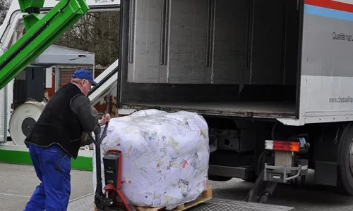 - Verdichting van het afval in een PE-foliezak van 1400 liter