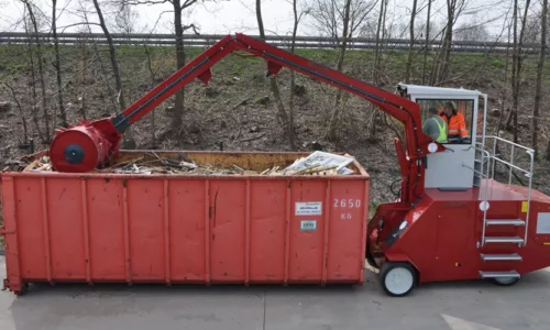Deze machine is ideaal voor milieustraten, grote inzamelpunten en industrieterreinen die hun recyclebare stromen efficiënt én duurzaam willen verdichten. Hoe werkt het? De Mobil Jumbo heeft een zware stalen wals aan een arm, die in open containers over het recyclebaar materiaal rolt en het samenperst. Omdat dit een mobiele unit op wielen is, kan één machine meerdere containers op uw terrein bedienen. U rijdt de elektrische roll-packer eenvoudig naar elke bak die verdicht moet worden.