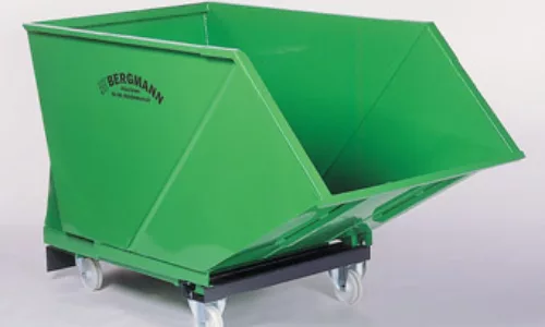 De gepatenteerde BERGMANN stortbak is een eenvoudig maar geniaal hulpmiddel voor het verzamelen van productieafval direct op de werkplek. De bak kan worden afgevoerd met een vorkheftruck of via de optioneel leverbare zwenkwielen. Geleegd wordt de stortbak door een vorkheftruck direct in een open container of in een vuil- of afvalperscontainer